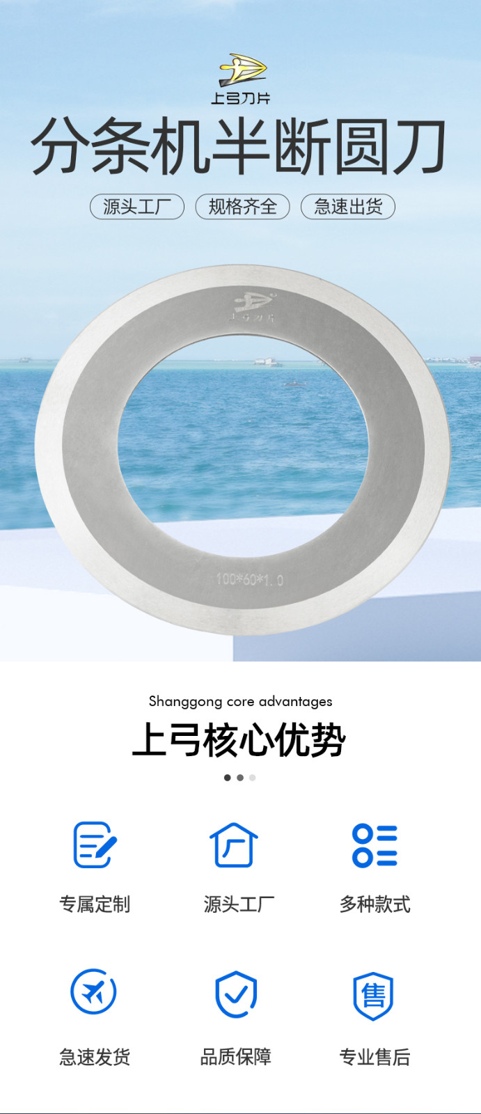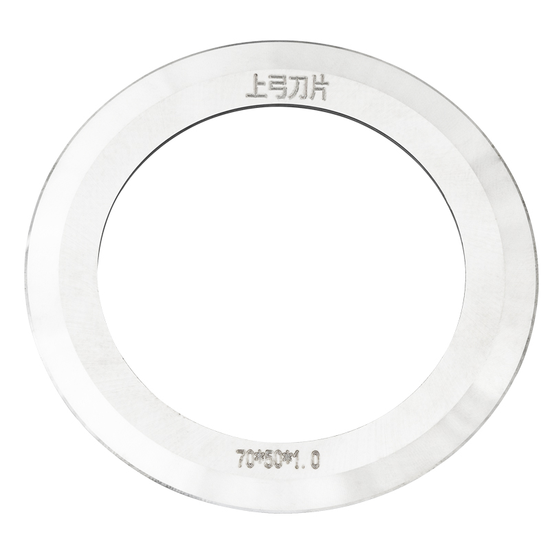 半斷分條機刀片屬于一種非常精密的刀具,外徑累計公差在正負0.02MM(人的頭發(fā)正常在0.08MM)主要是用于兩層材料在分切是底部一層不斷上層材料斷的分切加工,目前只有兩種材質(zhì),SKH-51和鎢鋼材質(zhì),鎢鋼材質(zhì)的缺點硬度高脆,調(diào)刀時容易碎口,故鎢鋼相較于SKH-51價格稍微低一點,但是高硬度又給它帶來了不錯的耐磨性。